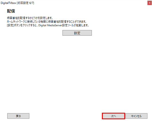 アドバイスネットワーク上の機器に、DigitalTVboxで録画した番組を配信したい場合は、初期設定が完了した後に設定します。