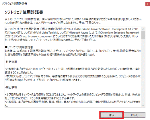 内容をよく読み、同意する場合は「はい」ボタンをクリックします。
