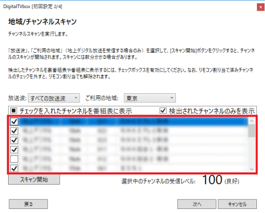 - 検出されたチャンネルが、一覧に表示されていることを確認します。