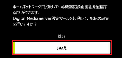 「ホームネットワークに接続している機器に録画番組を配信することができます。」と表示された場合は、「いいえ」ボタンをクリックします。