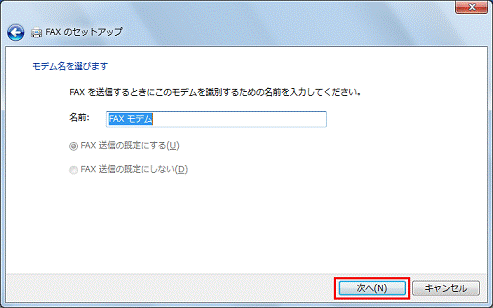 「FAXモデムへ接続します」をクリックします。