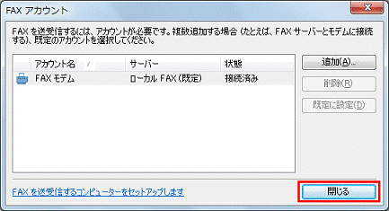 「ファイアウォールでブロックされています」と表示される場合は、「アクセスを許可する」ボタンをクリックします。 - 「FAXアカウント」に戻ります。