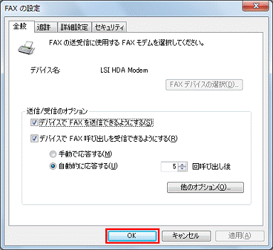 - 「デバイスでFAX呼び出しを受信できるようにする」にチェックがあることを確認します。