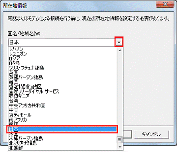「国名 / 地域名」の右側にある「▼」をクリックし、表示されるメニューからお使いの地域の国名、または地域名をクリックします。