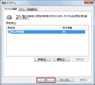 - 「電話とモデム」が表示されます。