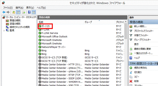 - 「セキュリティが強化された Windows ファイアウォール」に戻ります。
