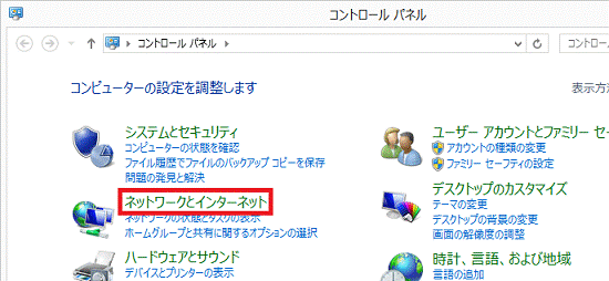 - 「コントロールパネル」の「ネットワークとインターネット」をクリックします。