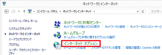 「コントロールパネル」から「インターネットオプション」を起動して、Internet Explorerの設定を初期化します。