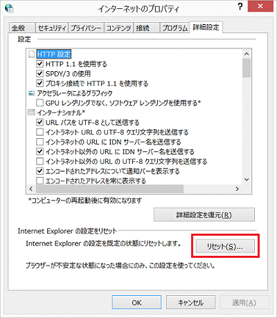 次の手順で、Internet Explorer 11の設定を初期化します。