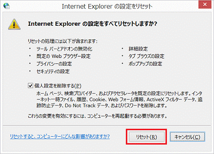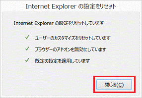 - 「Internet Explorer の設定をリセット」が表示されます。