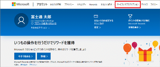 - 「Microsoft アカウント │ ホーム」が表示されます。