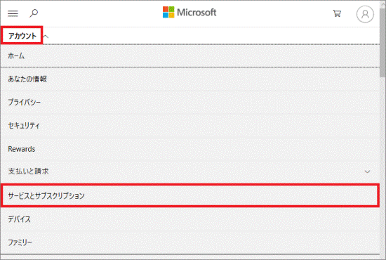 「アカウント」→「サービスとサブスクリプション」の順にクリックします。