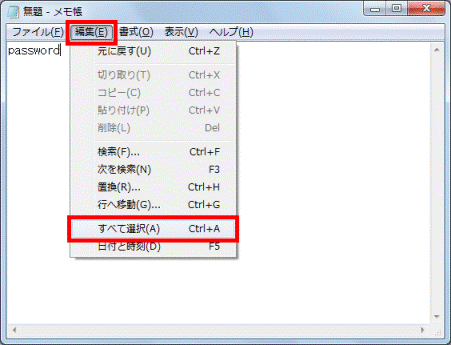 - パスワードを入力したら、「編集」メニュー→「すべて選択」の順にクリックします。