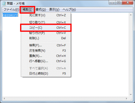 「編集」メニュー→「コピー」の順にクリックします。