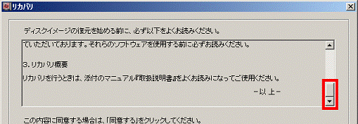 - 「ディスクイメージの復元を始める前に、必ず以下をよくお読みください。」と表示されます。