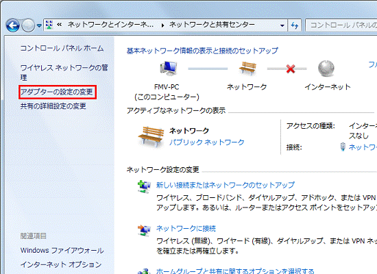 「アダプター」欄にあるアダプターをクリックしチェックを外します。