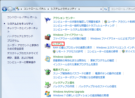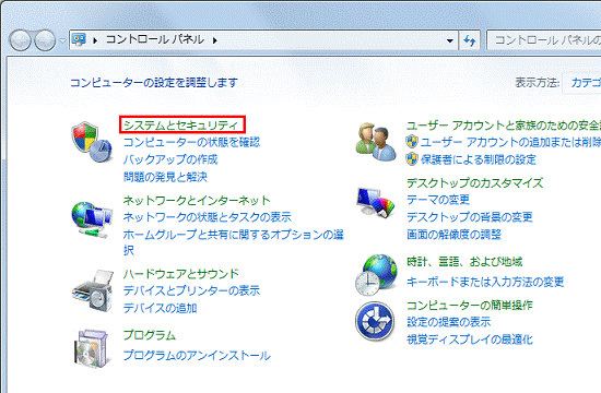 「システムとセキュリティ」が表示されていない場合は、次の手順へ進みます。 - 「システム」をクリックします。