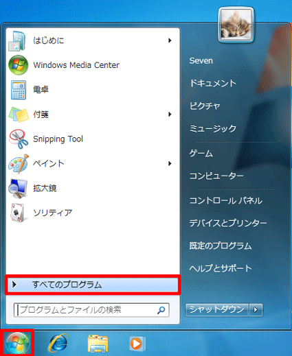 - 「スタート」ボタンをクリックし、「すべてのプログラム」をクリックします。