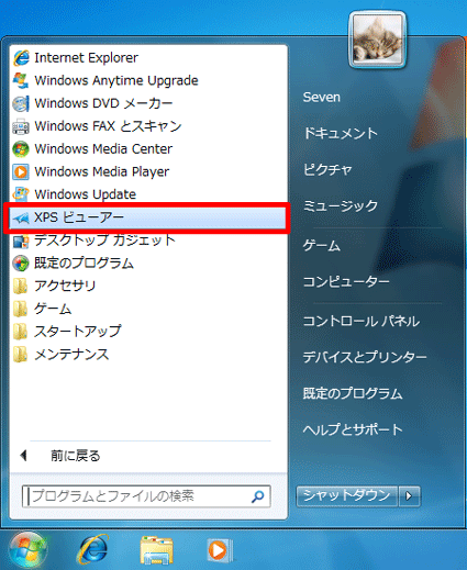 スタートメニューに表示されていないアプリケーションを起動したいときは、スタートメニューの「すべてのプログラム」を使用します。