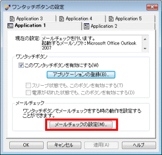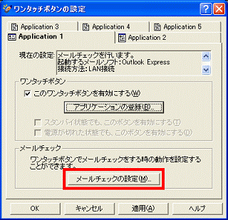 「Application1」または「E-mail」タブをクリックします。 - 「メール環境の設定」ボタンをクリックします。