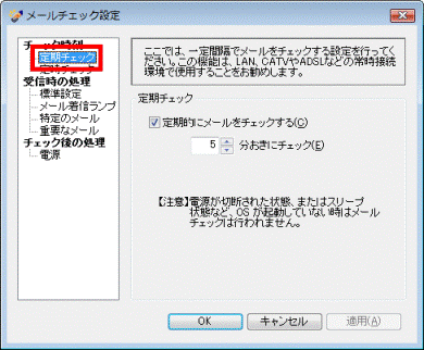 「チェック時刻」項目の、「定期チェック」をクリックします。