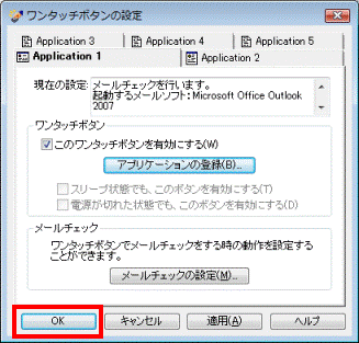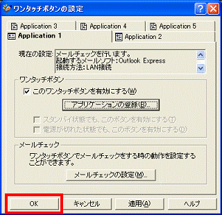 「OK」ボタンをクリックし、「ワンタッチボタンの設定」を閉じます。