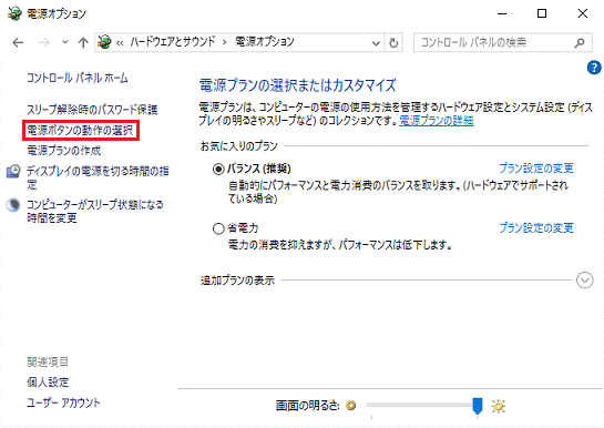 「電源オプション」の「電源の追加設定」から、設定を変更します。