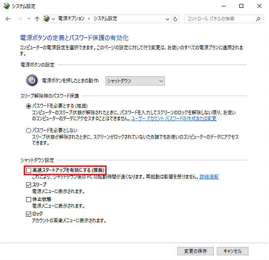 [Windows 10] 高速スタートアップを無効にする方法を教えてください。