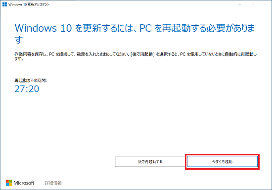 アドバイス「今すぐ再起動」ボタンをクリックしなくても、画面左に表示されている「再起動までの時間」に表示されている時間が経過すると、自動的に再起動が始まります。