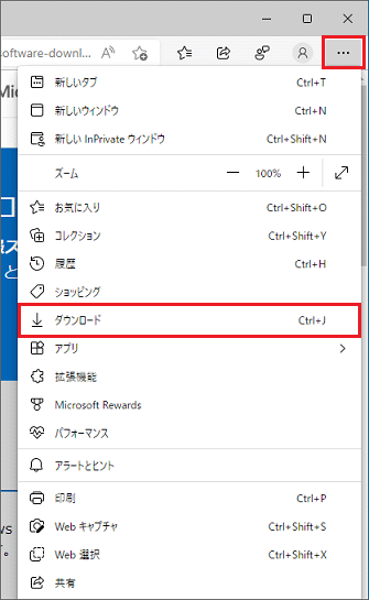 - ダウンロード結果の表示が消えてしまった場合は、「…」(設定など)→「ダウンロード」の順にクリックすると表示されます。