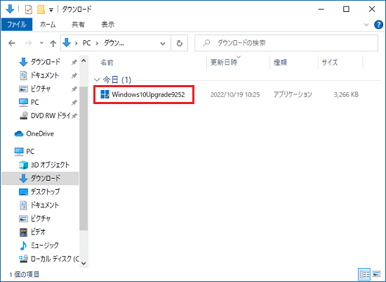 - 「ダウンロード」フォルダー(保存先を変更している場合は、変更した場所)に保存した「Windows10Upgrade9252(Windows10Upgrade9252.exe)」ファイルは、削除してかまいません。