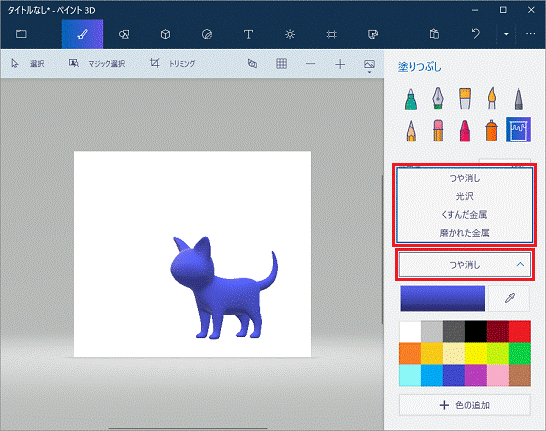 - 「つや消し」など、素材の項目をクリックして表示されるメニューから、お好みの素材(質感)をクリックします。