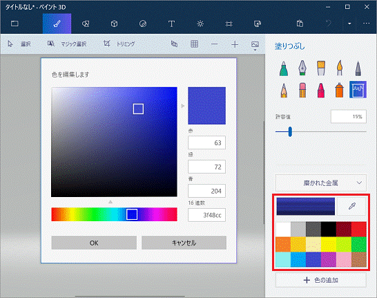 [ペイント 3D] ペンやバケツで色を塗る方法を教えてください。