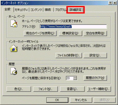 Internet Explorerの設定を変更する(Windows Me / Windows 98に限る)