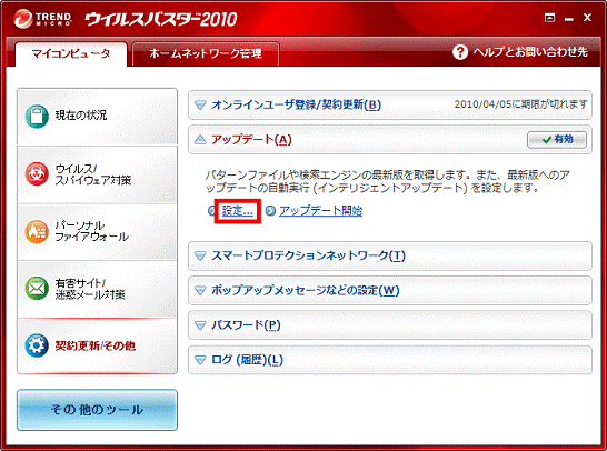 [ウイルスバスター2010] ウイルスのパターンファイルやプログラムをアップデートする方法を教えてください。