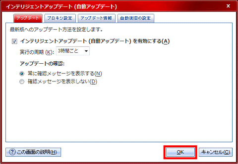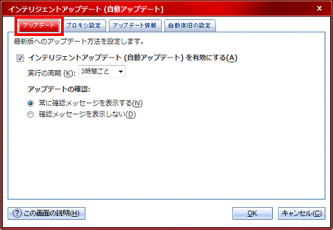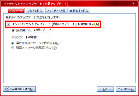 - 「インテリジェントアップデート(自動アップデート)を有効にする」にチェックが付いていることを確認します。