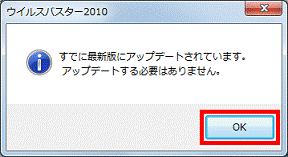 「すでに最新版にアップデートされています。」と表示された場合は、「OK」ボタンをクリックします。