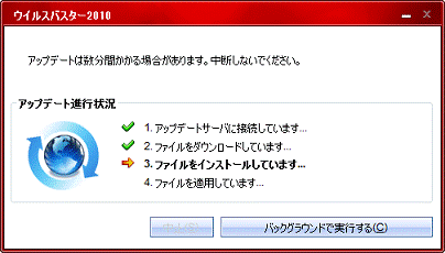 アップデート内容によっては、ウイルスバスター2010のメイン画面が自動的に閉じることがあります。