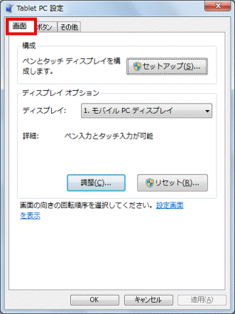 OS標準の機能である、「Tablet PC 設定」を使用してタッチ位置を調整すると、ペンの位置が正しく動作しなくなる可能性があります。
