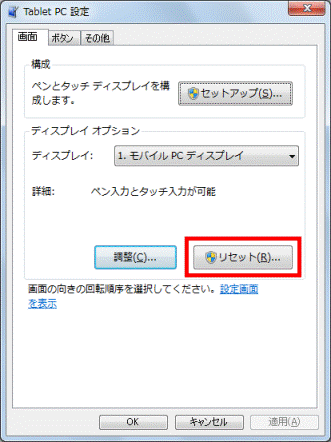 「Tablet PC 設定」を使用してタッチ位置を調整した場合は、次の手順で設定をリセットします。