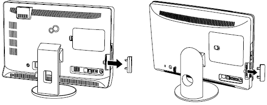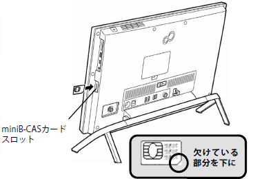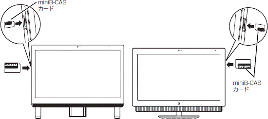 miniB-CAS カードスロットの位置は機種によって異なり、画面のサイズが27型ワイドの場合は本体左側面、23.8型ワイドの場合は本体右側面です。