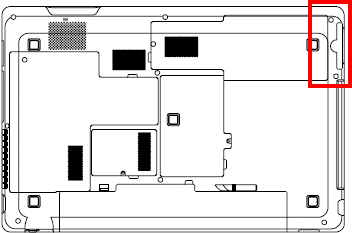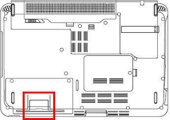パソコン本体の下面にある、内蔵バッテリパックの下に、B-CAS カードスロットがあります。