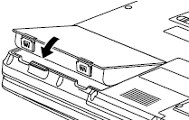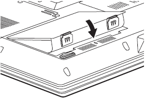 - 内蔵バッテリパックをななめ上から差し込み、カチッと音がするまで、しっかりとはめ込みます。