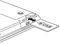 「miniB-CAS」と記載されている面をパソコン本体の背面側にして、カードの角が欠けている部分から、まっすぐに奥までしっかりとセットします。