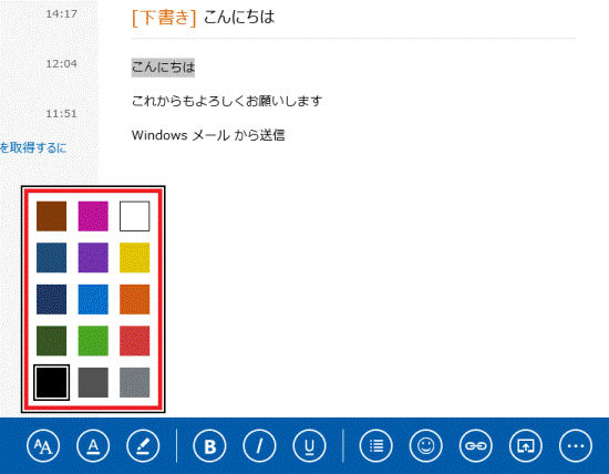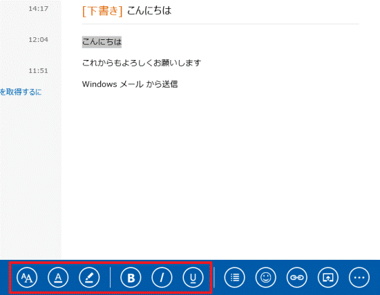 Windows ストア アプリのメールで、本文の書式を設定する方法を教えてください。
