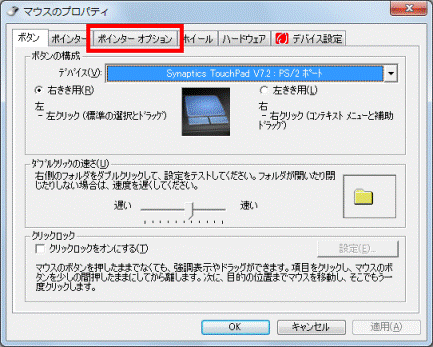 - 「マウスのプロパティ」が表示されます。