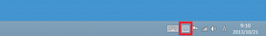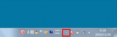 - 画面の右下の通知領域にある、「▲」ボタンをクリックします。