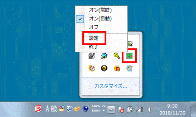 - アルファベットのPのアイコン(PointGrab Hand Gesture Control Settings)を右クリックし、表示される一覧から「設定」をクリックします。