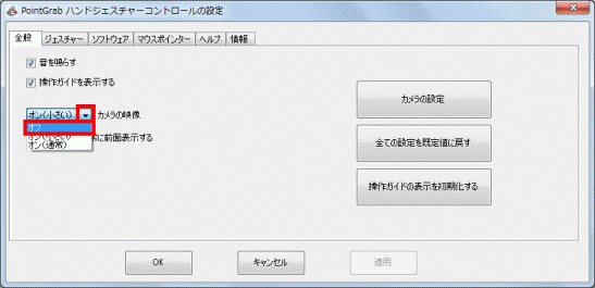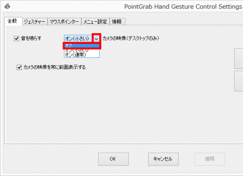 - 「カメラの映像」の「▼」ボタンをクリックし、表示される一覧から「オフ」をクリックします。