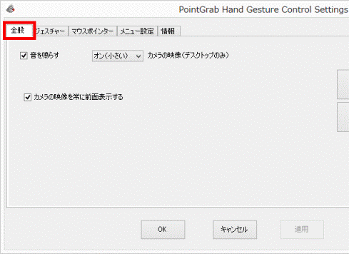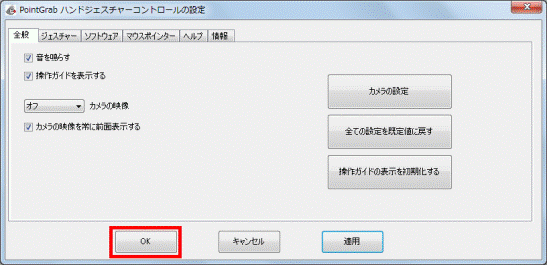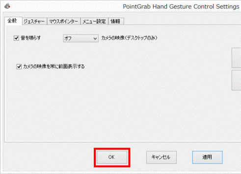- 「PointGrab ハンドジャスチャーコントロールの設定」が表示されます。